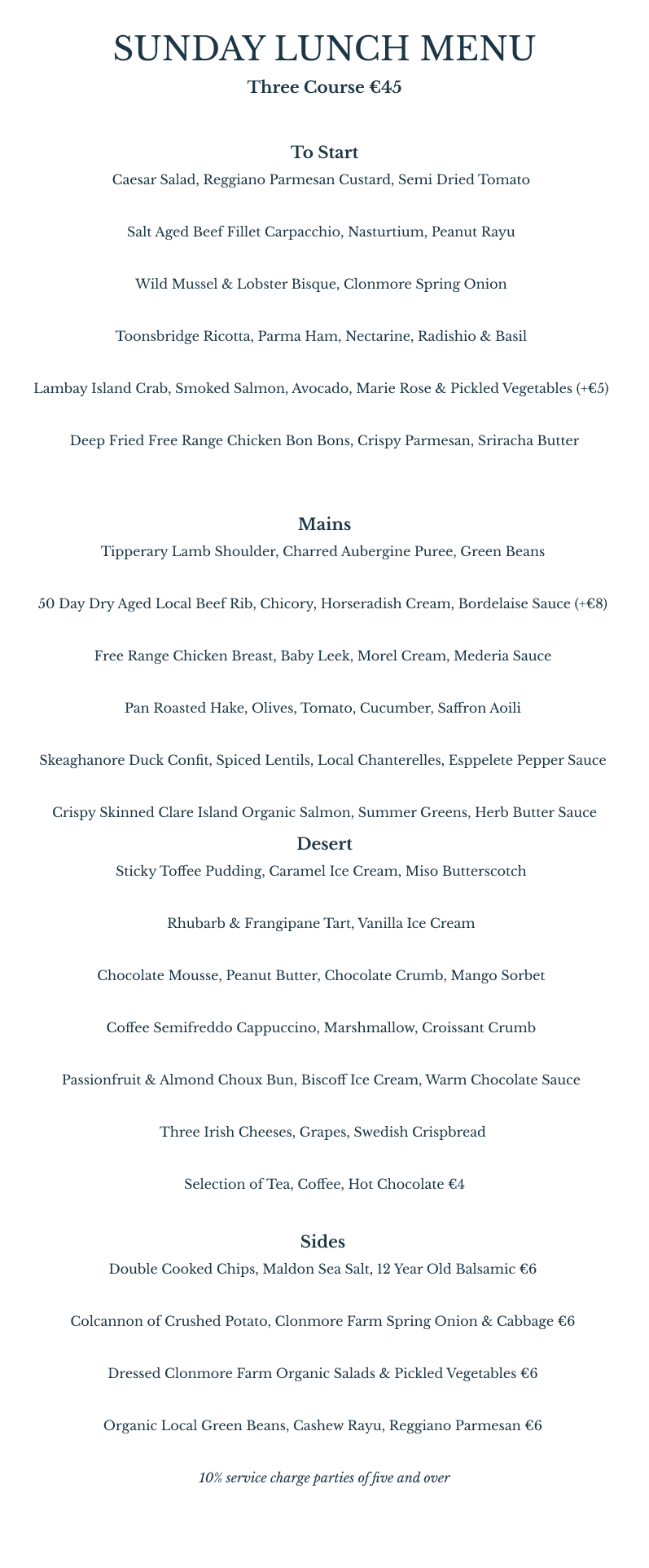 Join us for Sunday lunch at Chez Hans a fine dining experience built around comfort, flavour, and seasonal Irish ingredients. Our Sunday menu features carefully prepared dishes that bring warmth and refinement to the end of your week. Served in our historic dining hall beneath the Rock of Cashel, it’s a relaxed but elevated way to spend your Sunday.